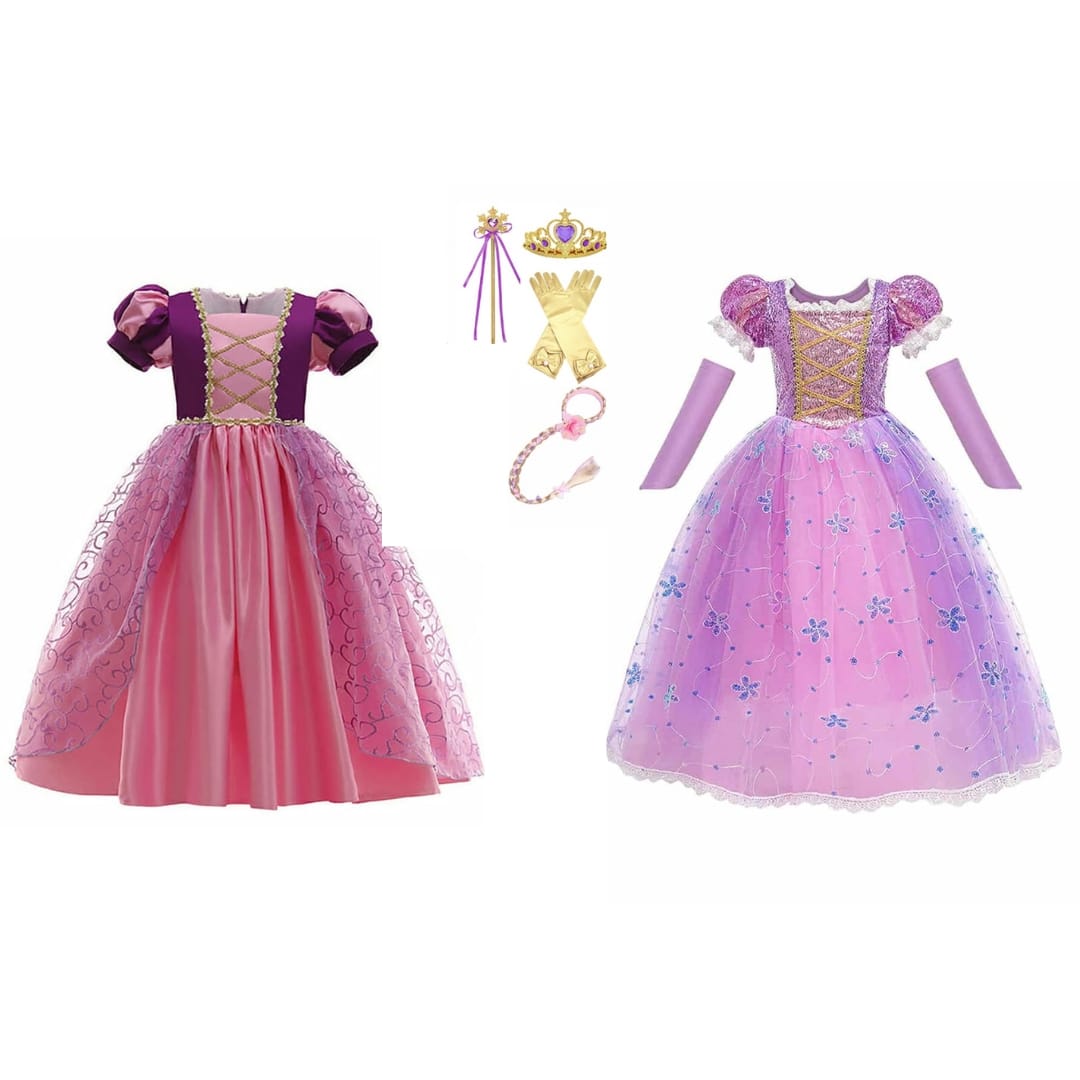 2x Rapunzel prinsessenjurk + accessoires – Voordeelpakket