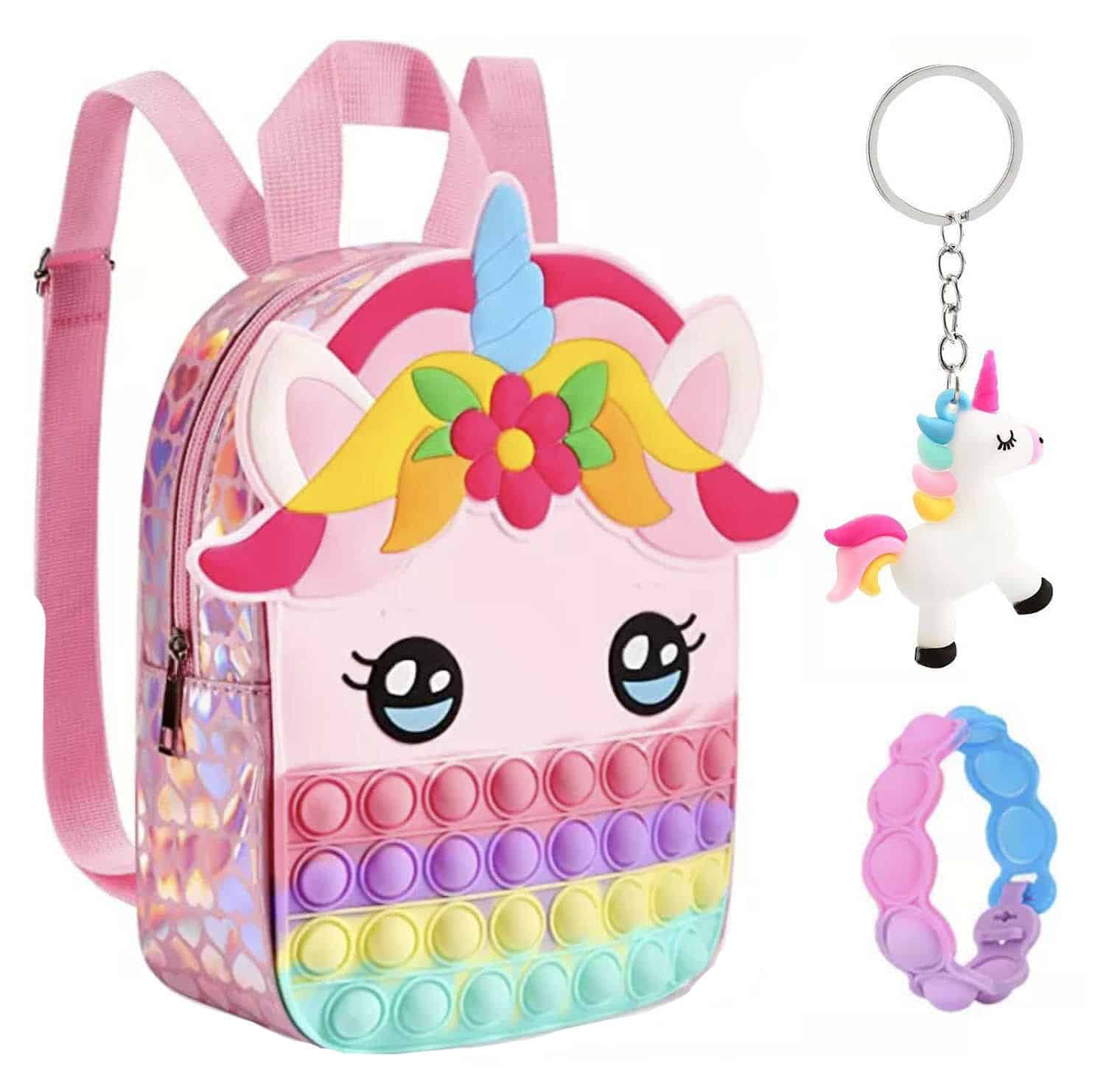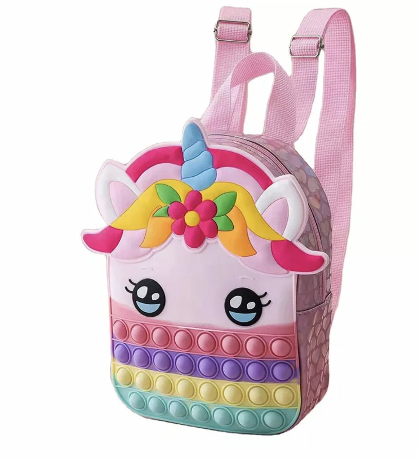 Het Pop It pakket betaat uit een roze Unicorn tasje, Unicorn Hanger en een Armband.