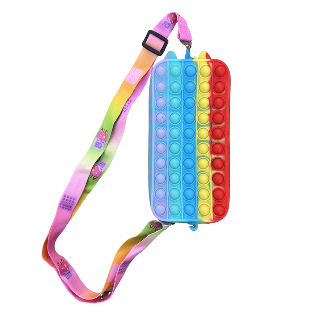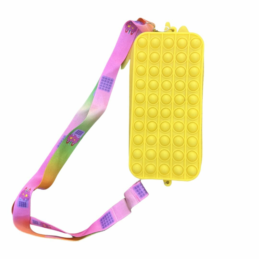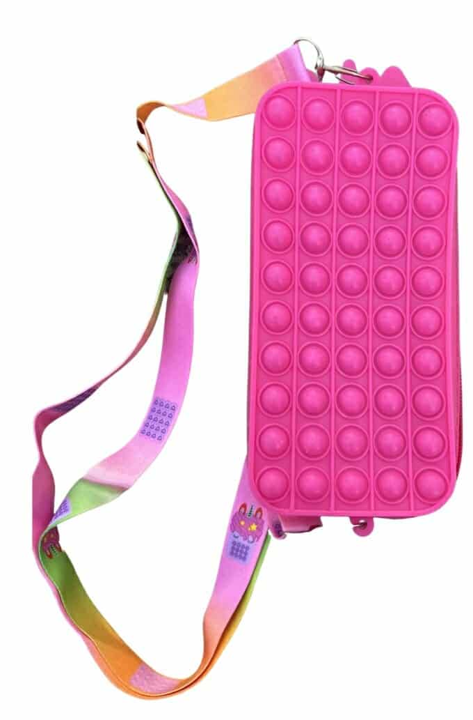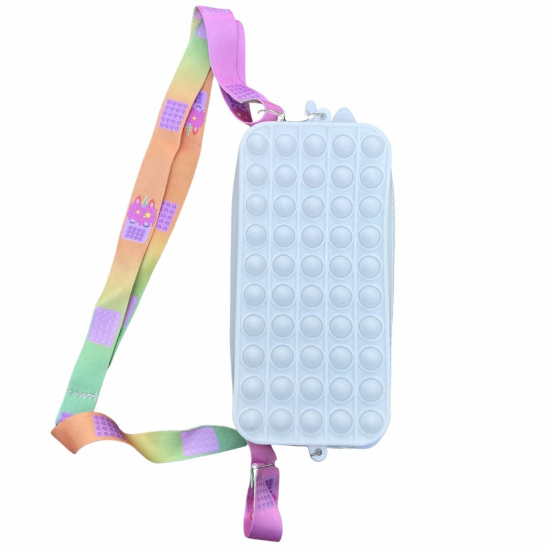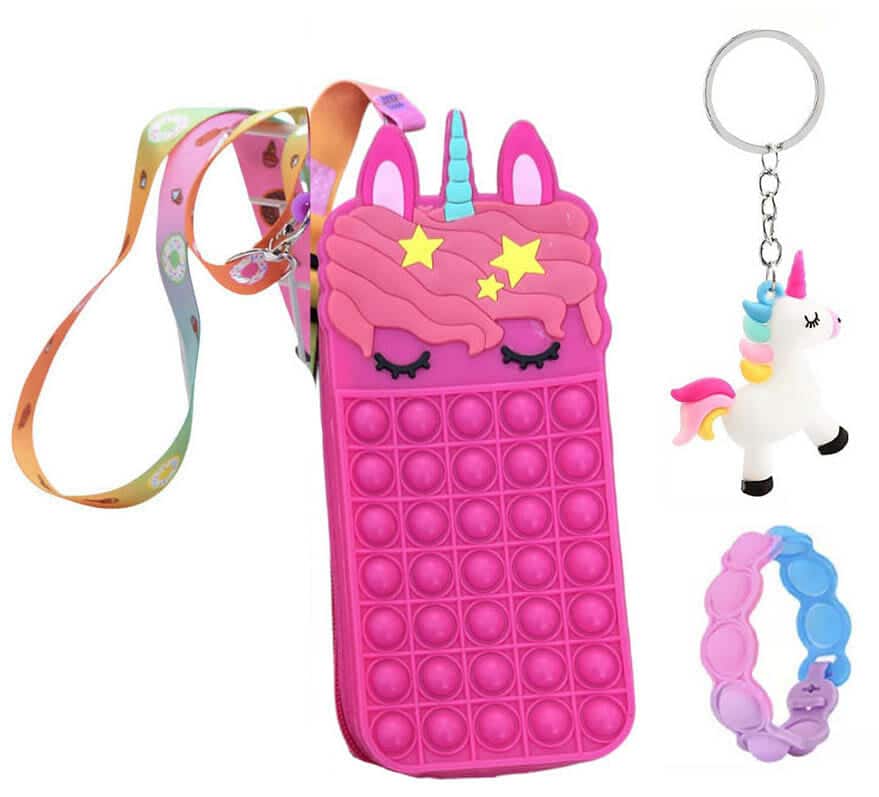 Het Pop It pakket betaat uit een multi gekleurd Unicorn tasjeUnicorn Hanger en een Armband.