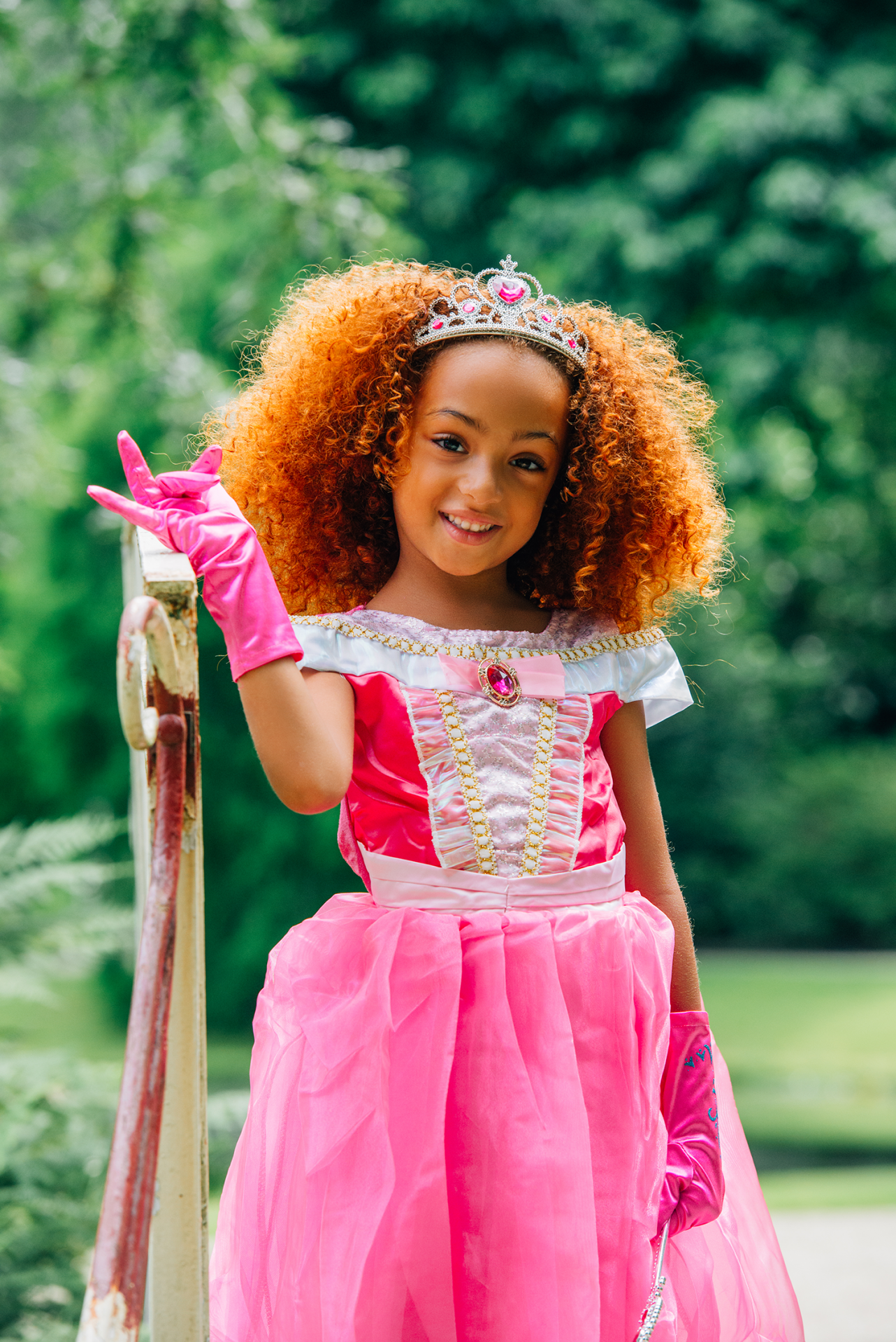 Je ontvangt deze Aurora prinsessenjurk inclusief accessoires.