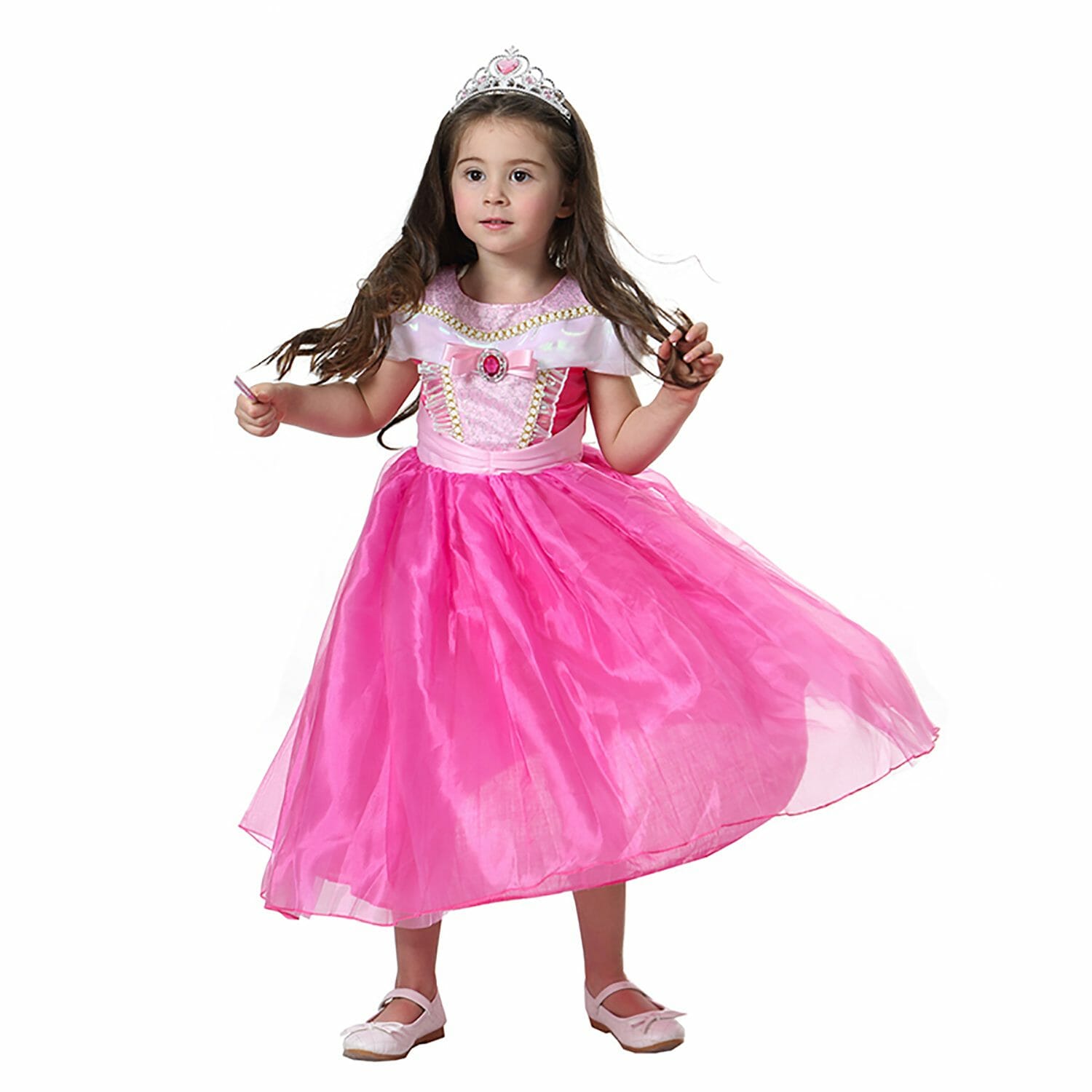 Wil jij een lach op haar gezicht toveren en haar uren speelplezier bezorgen? Plaats dan nu deze roze Aurora prinsessenjurk met prinsessen kroon in je winkelmandje!