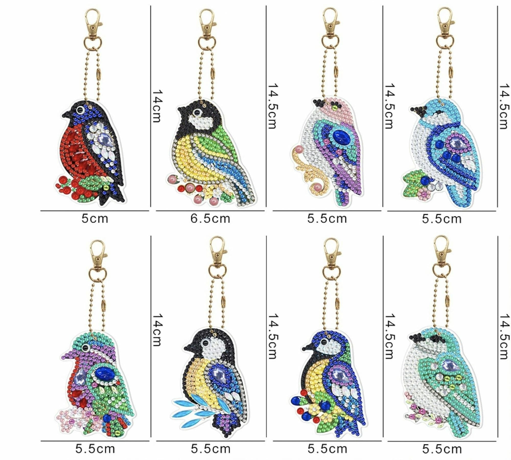 Diamond Painting Sleutelhanger – 8 stuks – Dubbelzijdig – Vogel – Hobby
