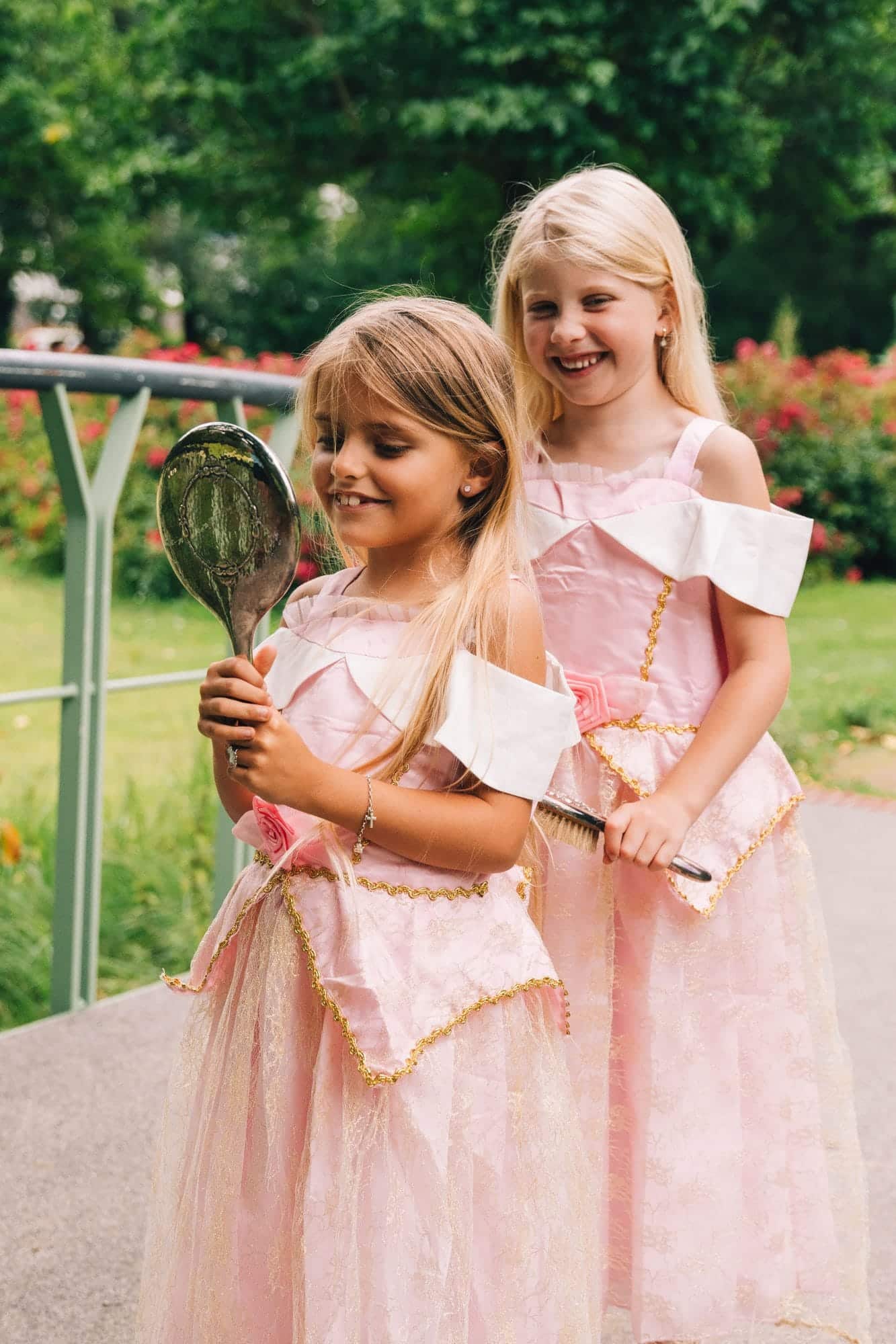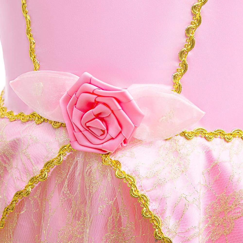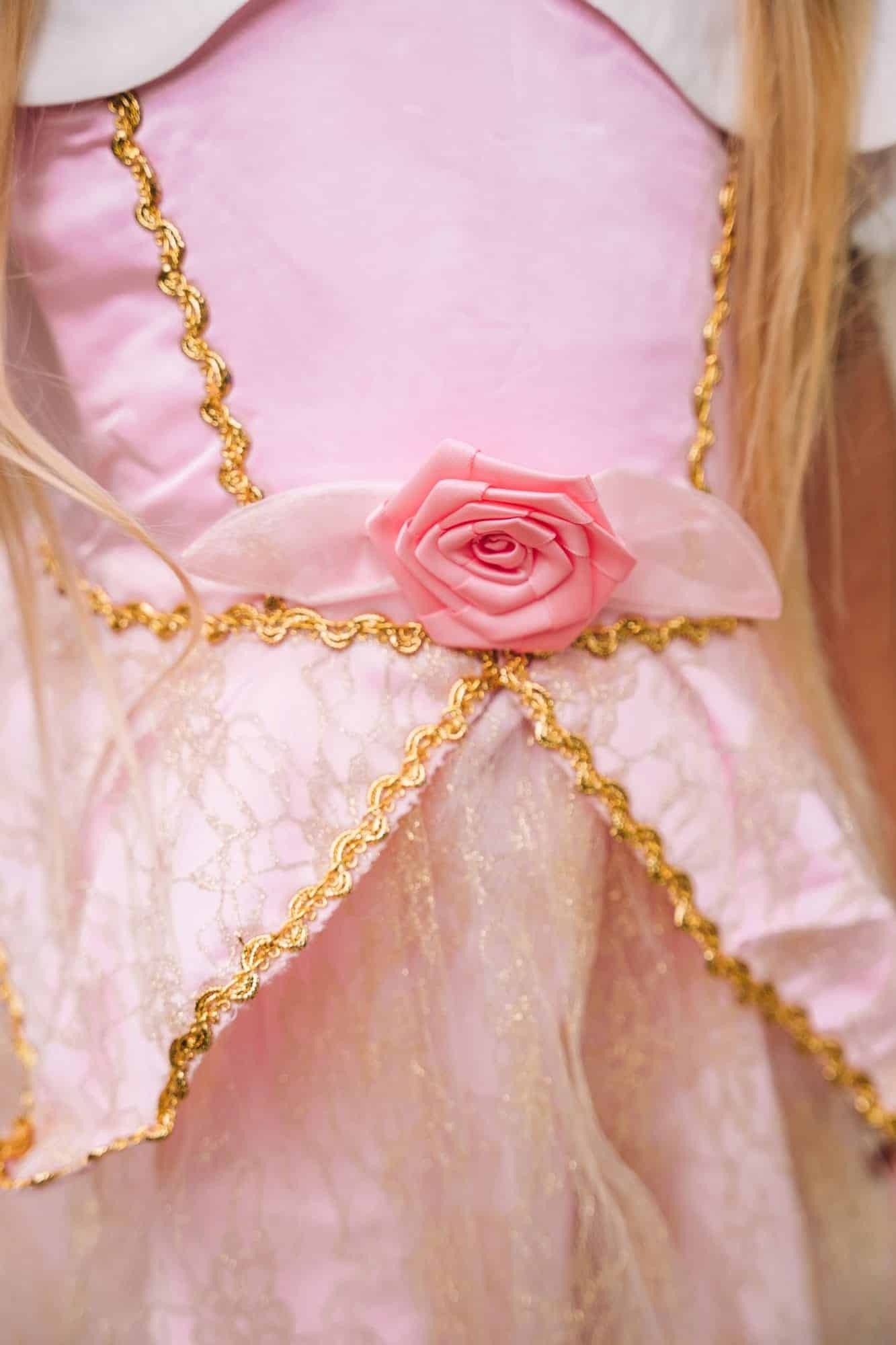 Onze roze Doornroosje jurk is een luxe verkleedjurk gemaakt van hoogwaardige materialen, stevige stof en mooi afgewerkt.