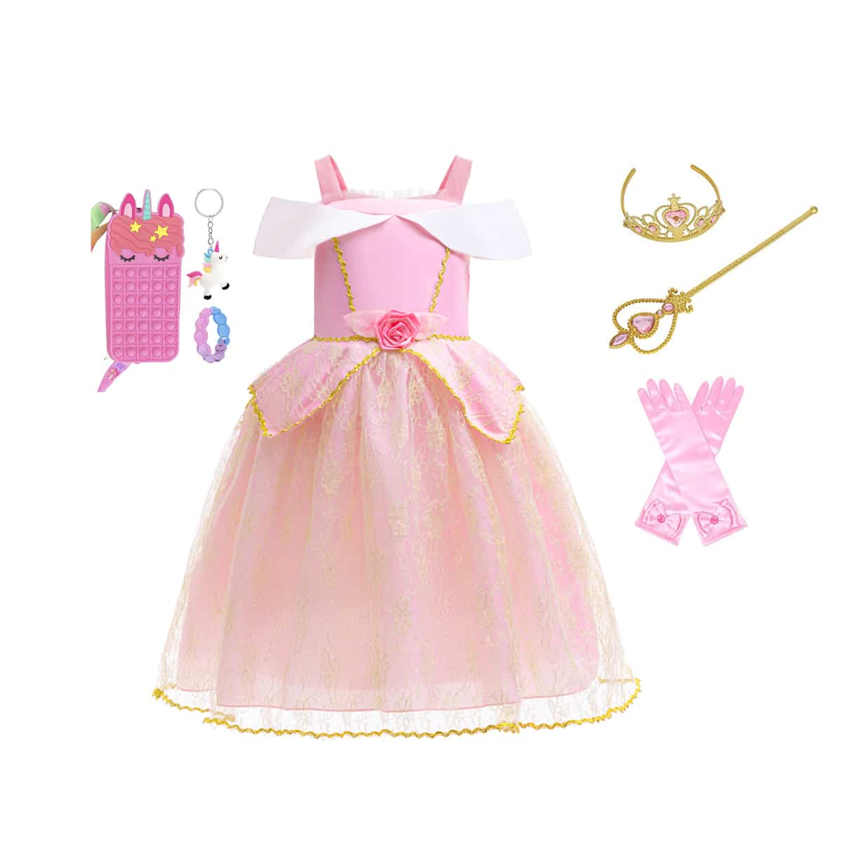 Home > Verkleedkleding voor kinderen > Carnavalskleding voor kinderen > Doornroosje jurk – kroon, toverstaf, handschoenen