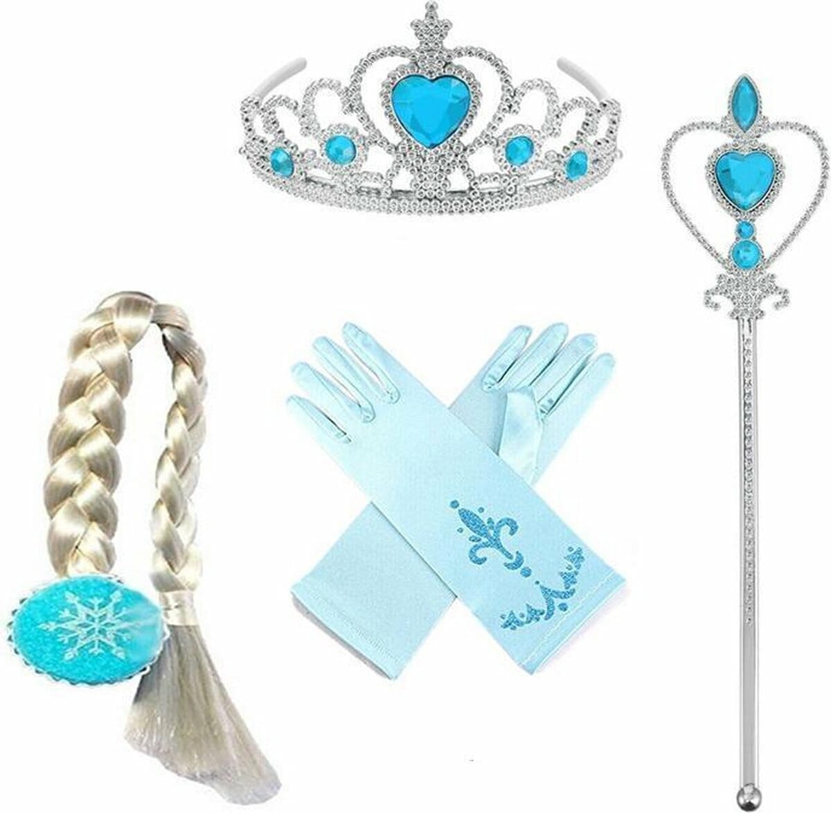 Om de Elsa look af te maken wordt de jurk tijdelijk geleverd met een magische toverstaf, Elsa vlecht, prinsessen handschoenen met glitters (3/9 jaar, one size) en een prinsessen kroon.
