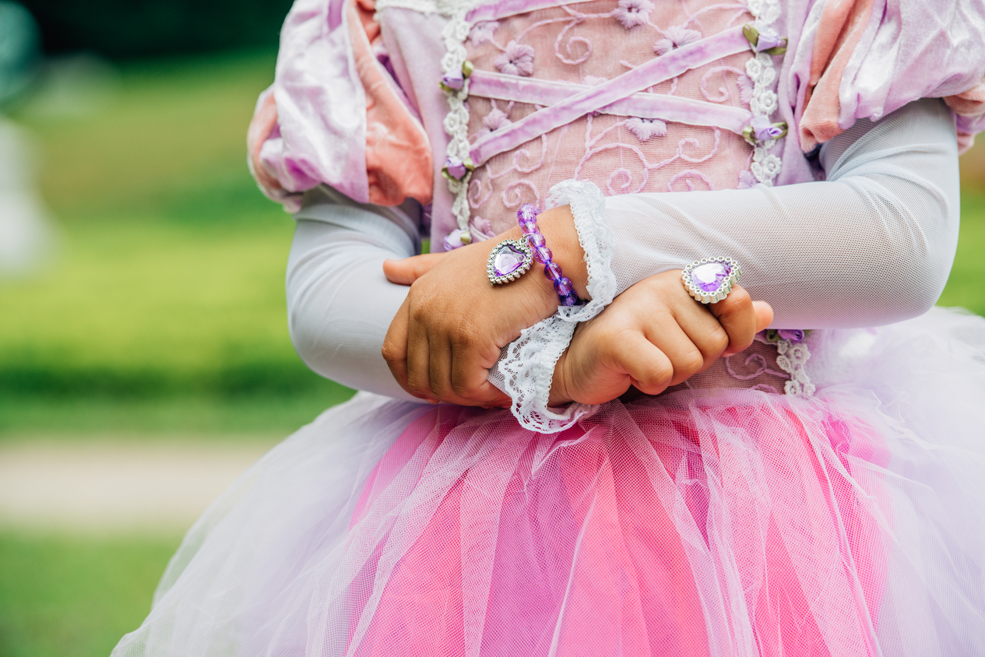 De witte mouwen zijn eveneens gemaakt van zachte tule.