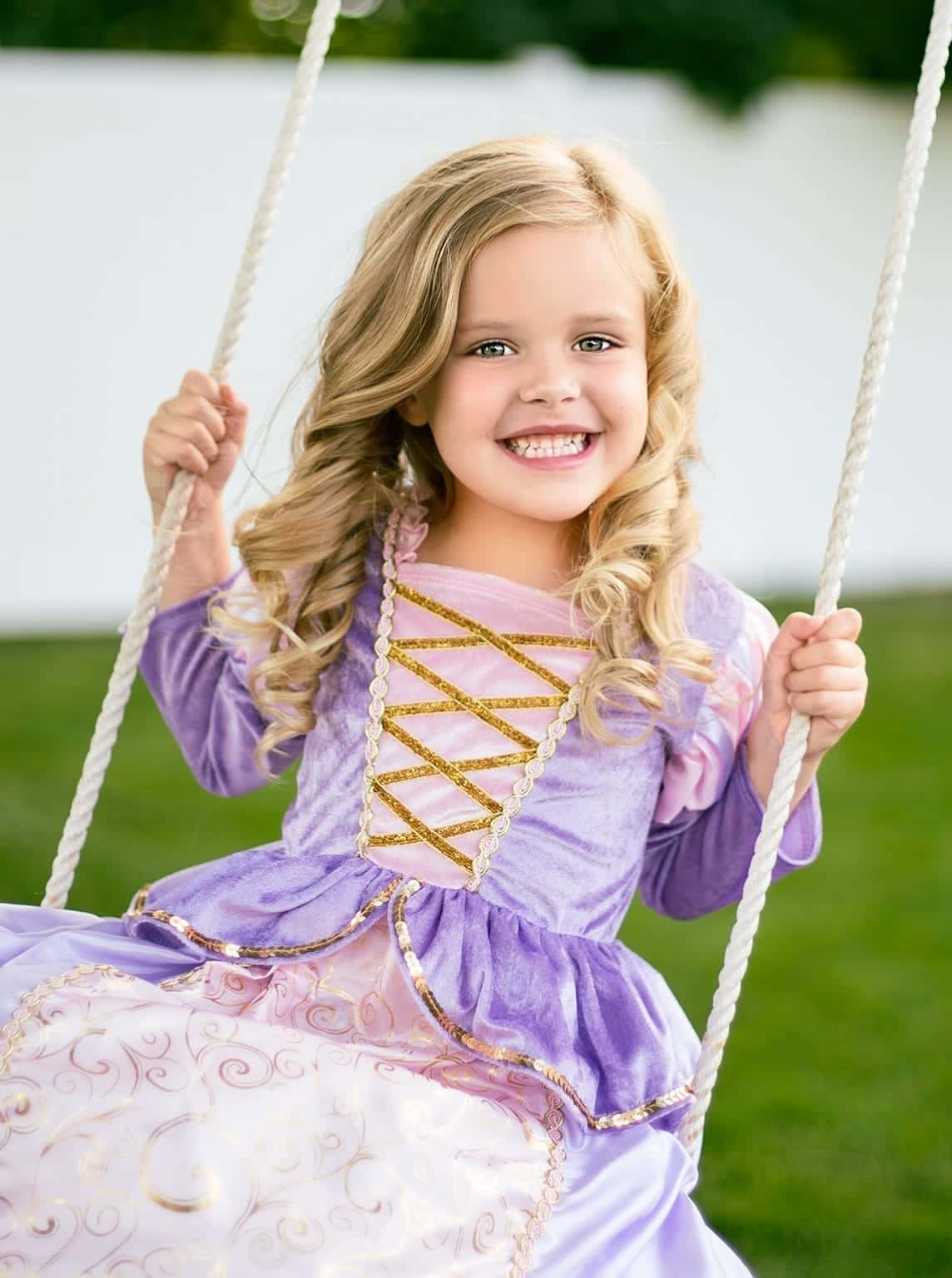 Deze mooie Rapunzel verkleedjurk is een echte prinsessenjurk.