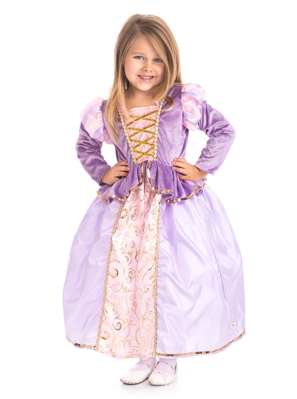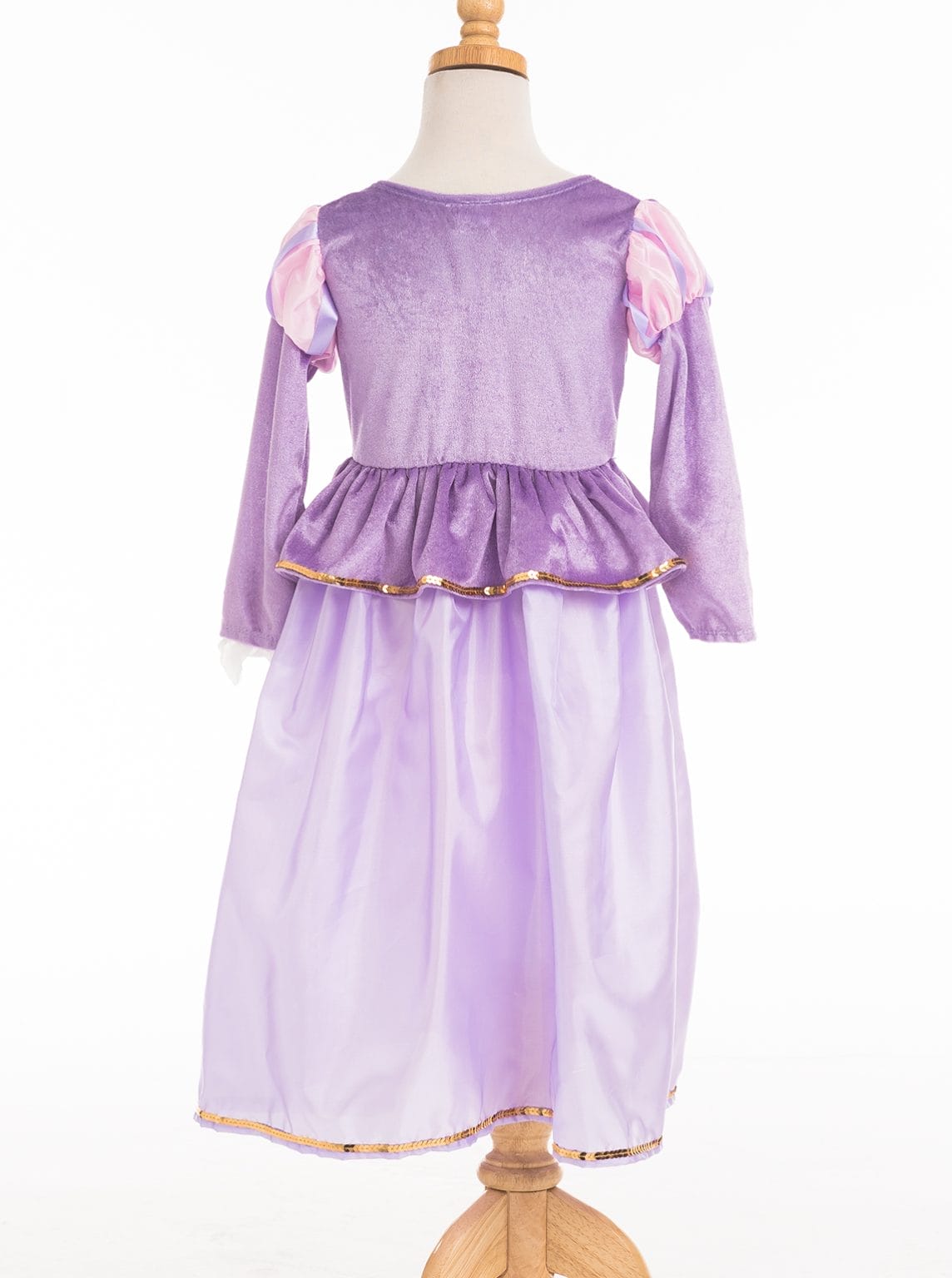 Deze klassieke Rapunzel verkleedjurk is een luxe paarse prinsessenjurk en wordt geleverd inclusief een Rapunzel haarband.