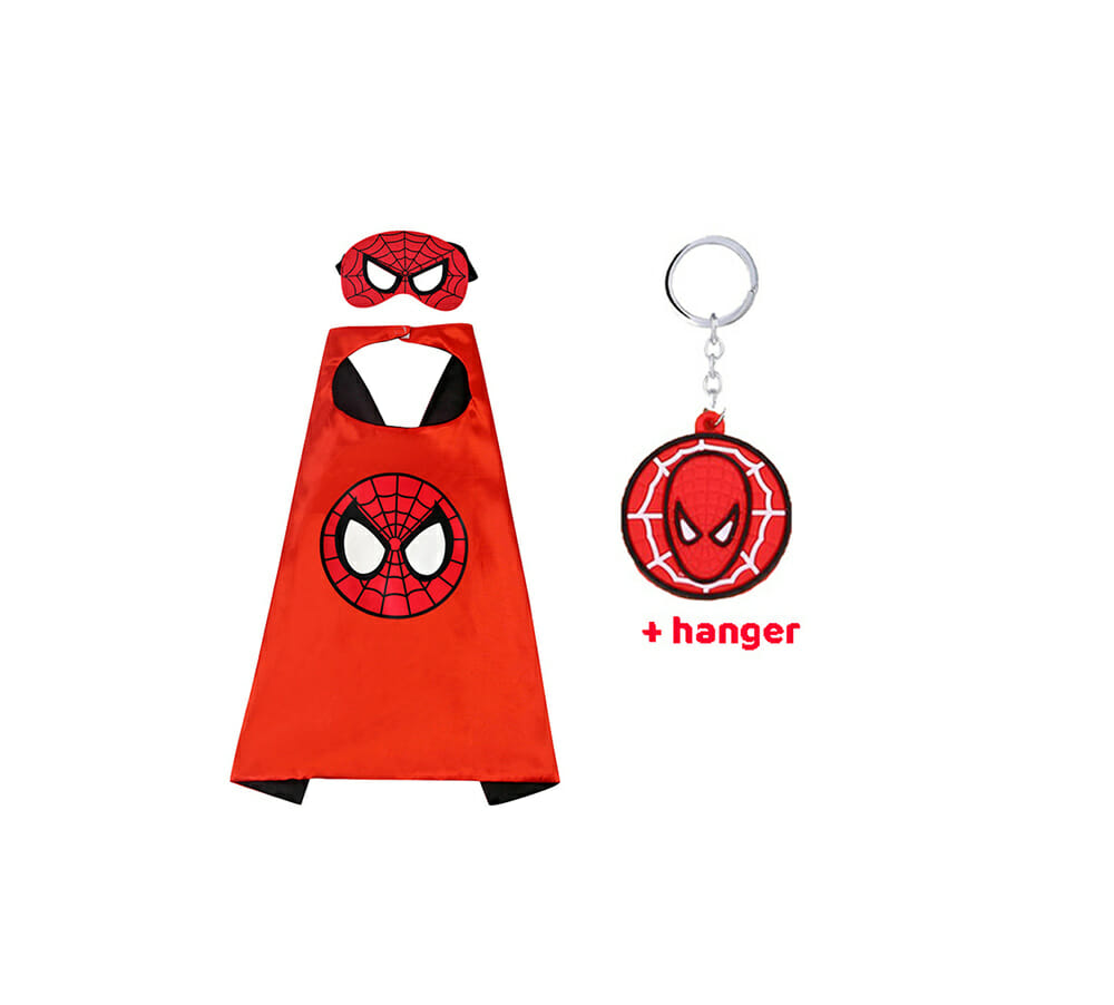 De Spiderman rode cape sluit door middel van klittenband. Een bijpassend vilten masker wordt bijgeleverd.De afmetingen van de cape zijn 70 x 70 cm.