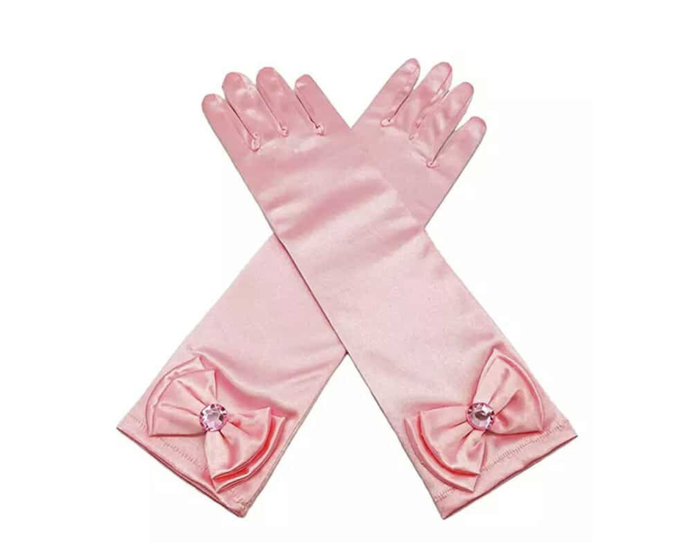 1x Paar lange roze prinsessenhandschoenen – one size (3-12 jaar).