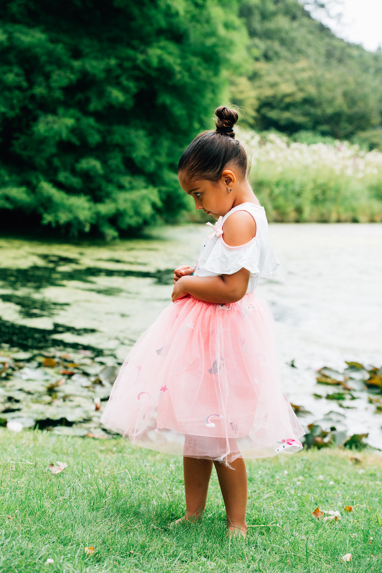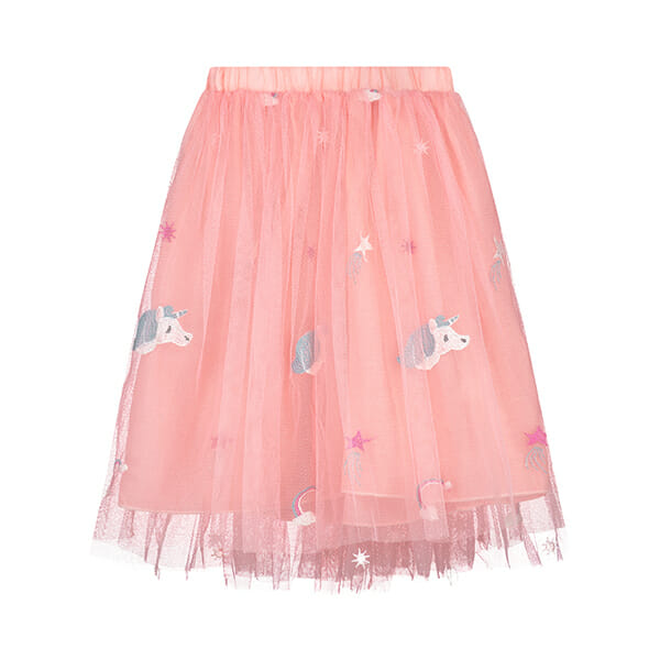 De bijpassende tutu rok heeft gekleurde Unicorn borduursels en een elastische band.