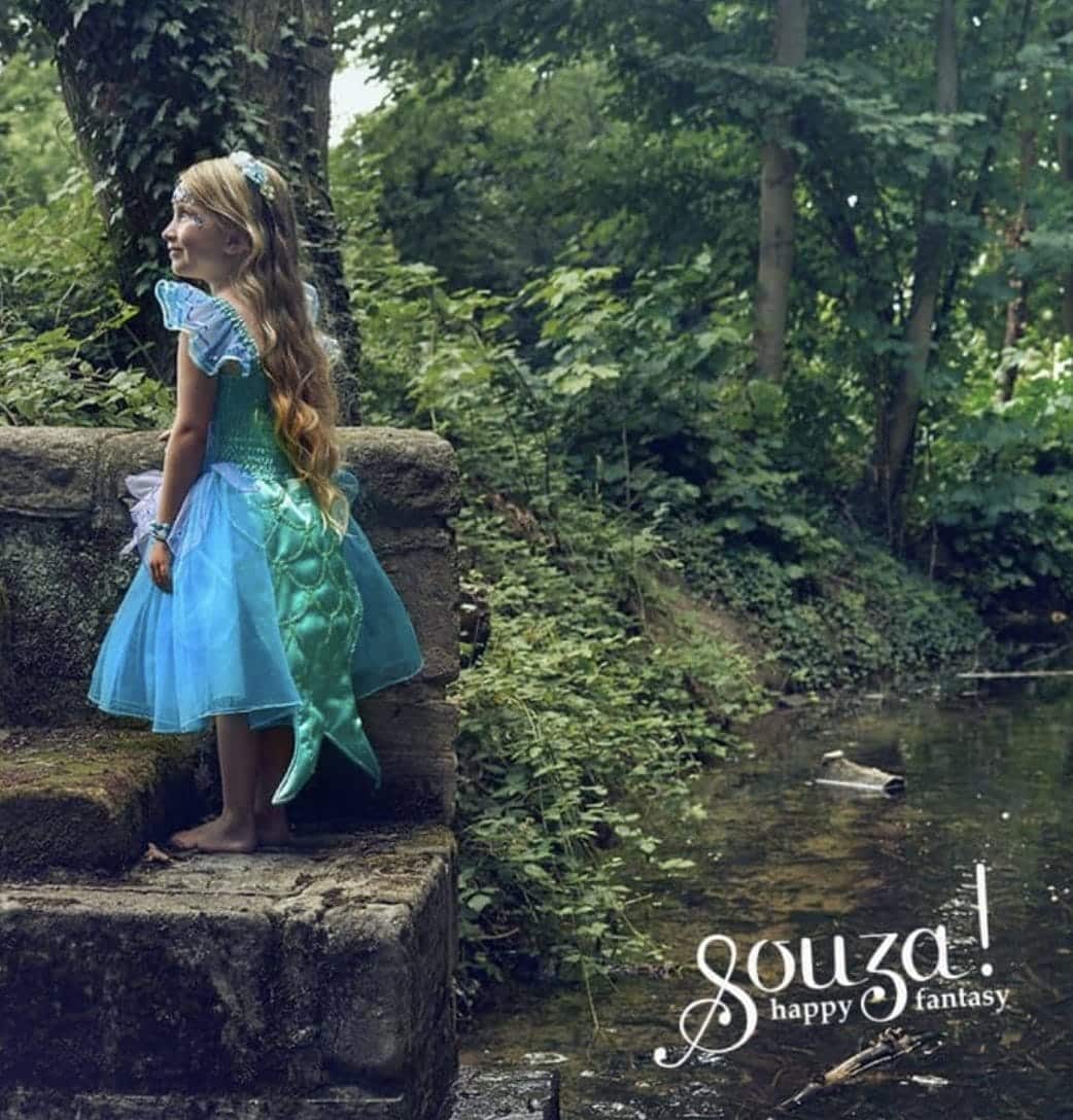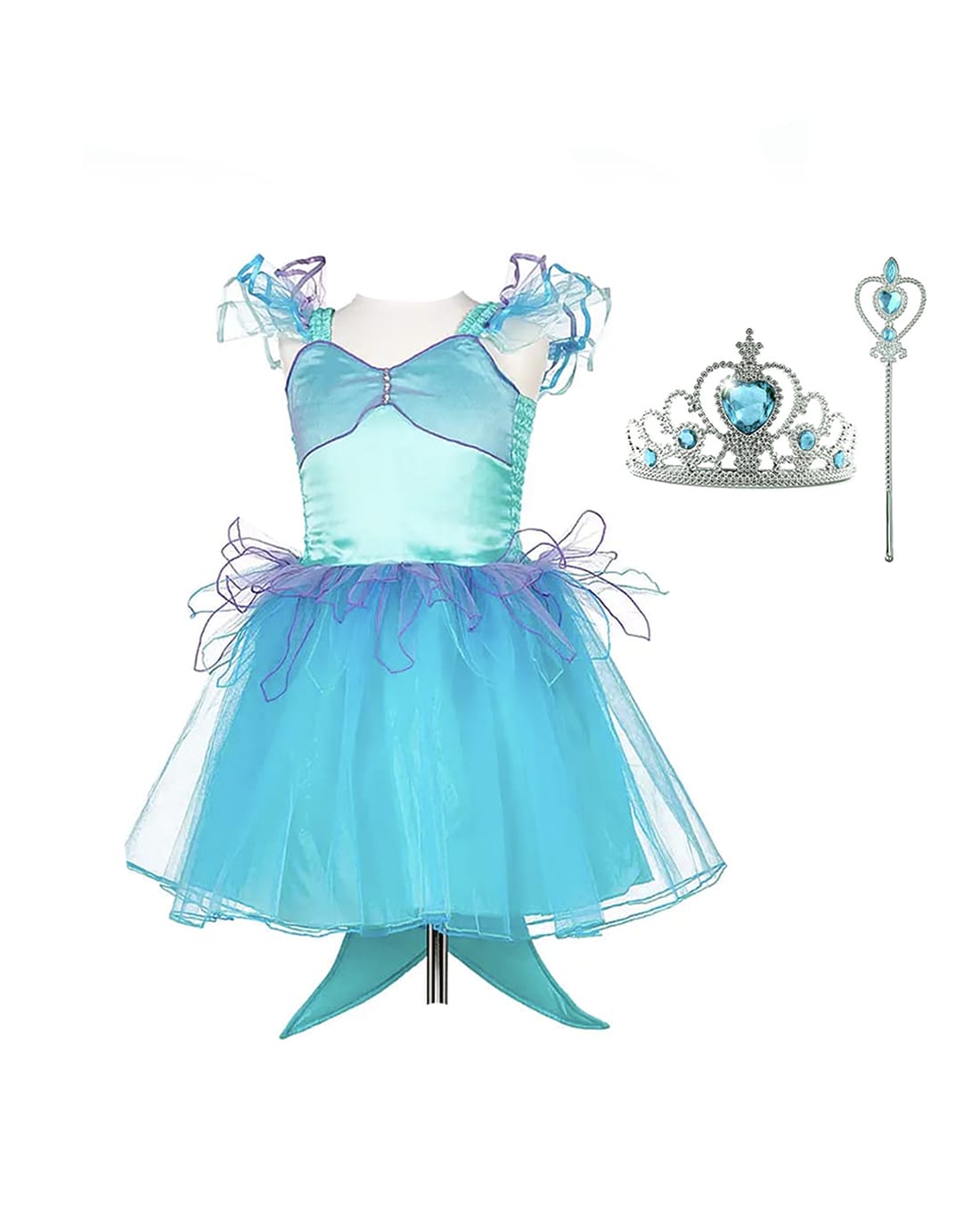 Ben je op zoek naar een mooie Ariël zeemeermin jurk voor je meisje? Shop dan deze blauwe prinsessenjurk met staart.