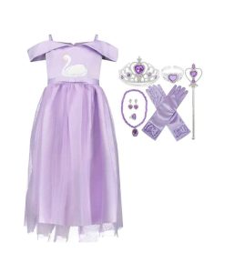 Prinsessenjurk Zwaan + Kroon, Toverstaf, Handschoenen, Juwelen