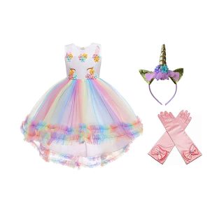 Unicorn Jurk – Eenhoorn Jurk + Haarband + Roze Prinsessen Handschoenen