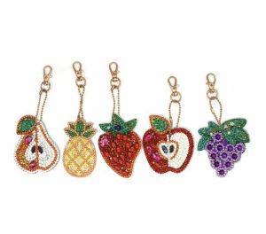 Diamond Painting Sleutelhanger – Dubbelzijdig – Fruit – Druif – Peer – Aardbei – Ananas – 5 x sleutelhanger – Volwassenen – Hobby – Kinderen – volledig pakket – Kinderfeestje – Zelf sleutelhanger maken – Hanger voor aan je tas