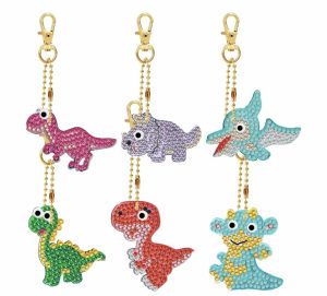 Diamond Painting Sleutelhanger – Dubbelzijdig – 6 x sleutelhanger – Dieren – Dino – Dinosaurus – Volwassenen – Hobby – Kinderen – volledig pakket – Kinderfeestje – Maak je eigen sleutelhanger – Hanger voor aan je tas