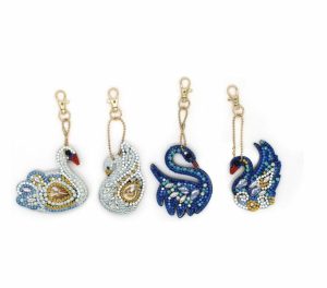 Diamond Painting Sleutelhanger – Dubbelzijdig – Dieren – Zwaan – 4 x sleutelhanger – Volwassenen – Hobby – Kinderen – volledig pakket – Kinderfeestje – Zelf sleutelhanger maken – Hanger voor aan je tas