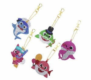 Diamond Painting Sleutelhanger – Dubbelzijdig – Haai- Dieren – 5 x sleutelhanger – Volwassenen – Hobby – Kinderen – volledig pakket – Kinderfeestje – Zelf sleutelhanger maken – Hanger voor aan je tas