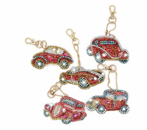 Diamond Painting Sleutelhanger – Dubbelzijdig – Auto – Rood – 5 x sleutelhanger – Volwassenen – Hobby – Kinderen – volledig pakket – Kinderfeestje – Zelf sleutelhanger maken – Hanger voor aan je tas