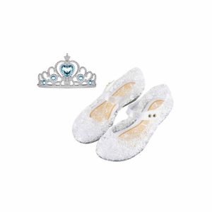 Prinsessen schoenen + kroon + toverstaf – verkleedschoenen meisje – zilver